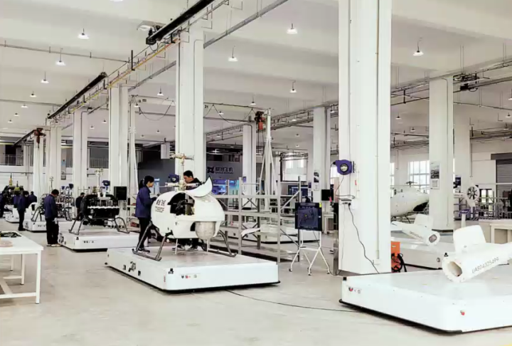 联合飞机哈尔滨基地无人机生产车间。